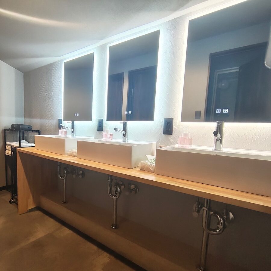また、洗面所についている鏡はライトをつけることも可能ですので、メイクやヘアセットも完璧です。
