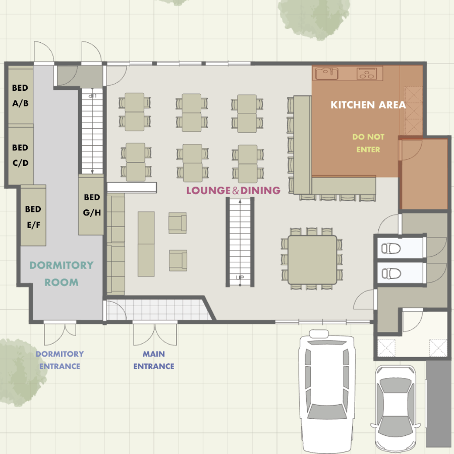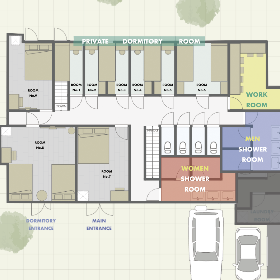 レストラン・トイレ・ドミトリールームがございます。
