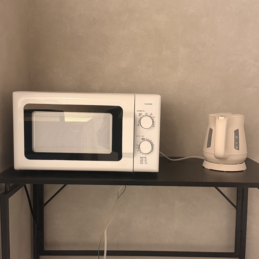 ワーキングルームには電子レンジと電子ケトルをご用意しております。